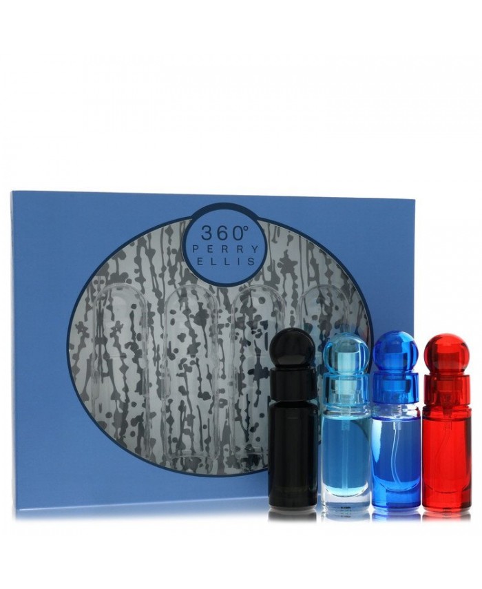 perry ellis 360 by Perry Ellis Gift Set -- Four piece Travel Gift Set Includes .25 oz Mini EDT Spray of each. 360 Black 360 For Men 360 Very Blue 360 Red. (Men)