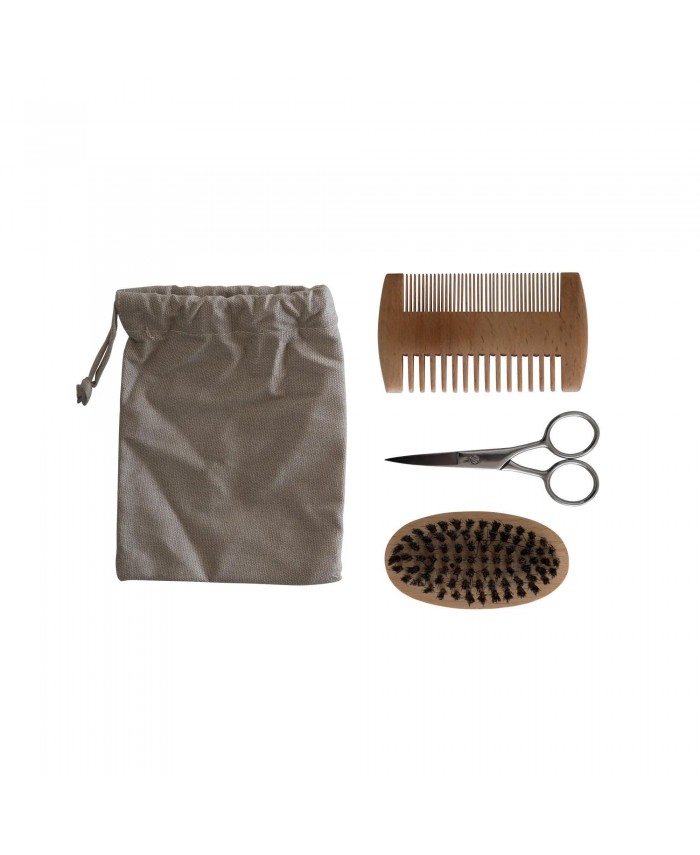 Description The complete grooming kit for the modern man. From trim to maintenance, you'll get the top selling men's grooming tools in an all-in-one kit. With the pro scissors, trim your beard or hair right at home for a fresh new look. Use the nylon comb and the wooden brush to expertly tidy and maintain your beard. Get the best groom at home to your liking with our simple grooming kit. Benefits All-in-one grooming kit for ease of useSharp stainless steel scissors expertly trims beard hairsQuality bamboo and beechwood materials make for long-lasting tools Application Use the pro scissors to expertly trim beard hairsUse the nylon comb and wooden brush to tidy and maintain your beard Ingredients Stainless Steel, Beech Wood, Polypropylene Bristles, 100% Natural Bamboo